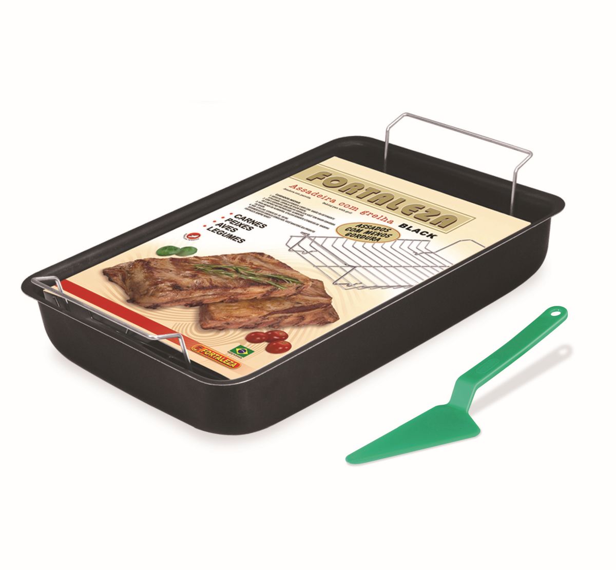 Assadeira Alta com Grelha, produto perfeito para fazer deliciosos assados no forno, fabricado no melhor padrão de qualidade, com alumínio 100% puro e aplicação de antiaderente de qualidade máxima, os alimentos não grudam em sua superfície, o que ajuda a evitar o uso exagerado de gordura no preparo dos alimentos, tornando-os mais saudáveis. Sem a grelha, também pode ser usado para fazer bolos e tortas. Assa e cozinha de forma homogênea qualquer tipo de alimento. Produto de alta qualidade com Design Prático, fabricado com materiais de primeira linha, desde o alumínio ao revestimento antiaderente. É muito fácil de usar, prático, fácil de limpar e muito resistente.