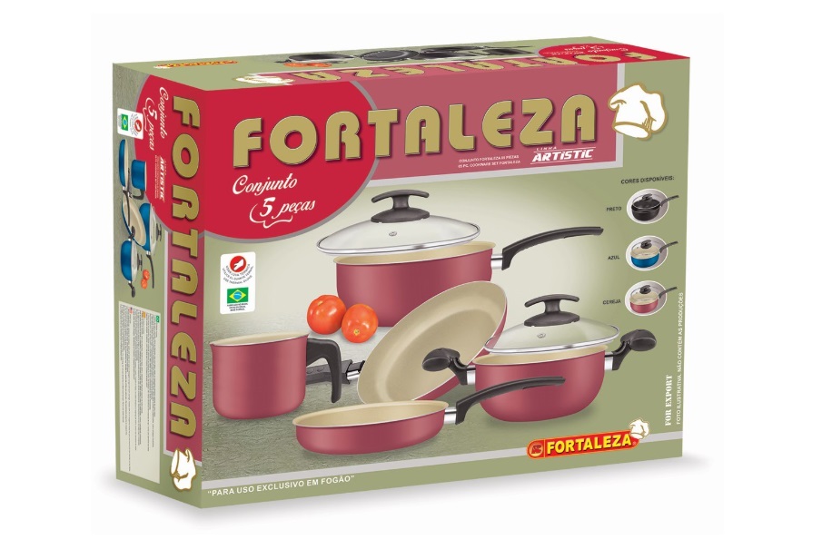 Este jogo de panelas Fortaleza além de muito bonito, tem muita qualidade. Produto fabricado no melhor padrão de qualidade, com alumínio 100% puro e aplicação de antiaderente de qualidade máxima, os alimentos não grudam em sua superfície, o que ajuda a evitar o uso exagerado de gordura no preparo dos alimentos, tornando-os mais saudáveis. Prático para usar no dia-a-dia, seu cabo anatômico dá mais comodidade, segurança e facilidade no manuseio das peças. O fundo usinado do produto, além de fazer com que não escorregue no fogão, permite que o calor se distribua melhor e desta forma, fritando, grelhando, assando ou cozendo de forma homogênea. Produtos de alta qualidade com Design Prático, fabricado com materiais de primeira linha, desde o alumínio ao revestimento antiaderente. É muito fácil de usar, prático, fácil de limpar e muito resistente. Praticidade, design e durabilidade aliado a um produto de qualidade.