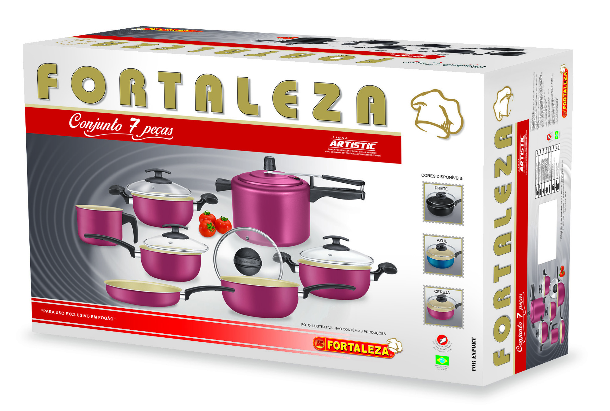 Dê mais cor a sua cozinha, este jogo de panelas Fortaleza além de muito bonito, tem muita qualidade. Produto fabricado no melhor padrão de qualidade, com alumínio 100% puro e aplicação de antiaderente de qualidade máxima, os alimentos não grudam em sua superfície, o que ajuda a evitar o uso exagerado de gordura no preparo dos alimentos, tornando-os mais saudáveis. Prático para usar no dia-a-dia, seu cabo anatômico dá mais comodidade, segurança e facilidade no manuseio das peças. O fundo usinado do produto, além de fazer com que não escorregue no fogão, permite que o calor se distribua melhor e desta forma, fritando, grelhando, assando ou cozendo de forma homogênea. Produtos de alta qualidade com Design Prático, fabricado com materiais de primeira linha, desde o alumínio ao revestimento antiaderente. É muito fácil de usar, prático, fácil de limpar e muito resistente. Praticidade, design e durabilidade aliado a um produto de qualidade.