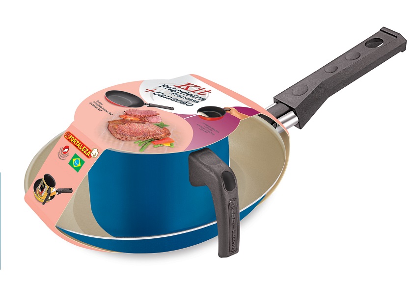 Este conjunto é muito Prático, Possui uma ótima Leiteira de 12 cm e a Frigideira de 20 cm. É fabricada com alumínio 100% puro e aplicação de antiaderente de qualidade máxima, os alimentos não grudam em sua superfície, o que ajuda a evitar o uso exagerado de gordura no preparo dos alimentos, tornando-os mais saudáveis. Seu cabo é anatômico e antitérmico, dando mais comodidade, segurança e facilidade no manuseio das peças.