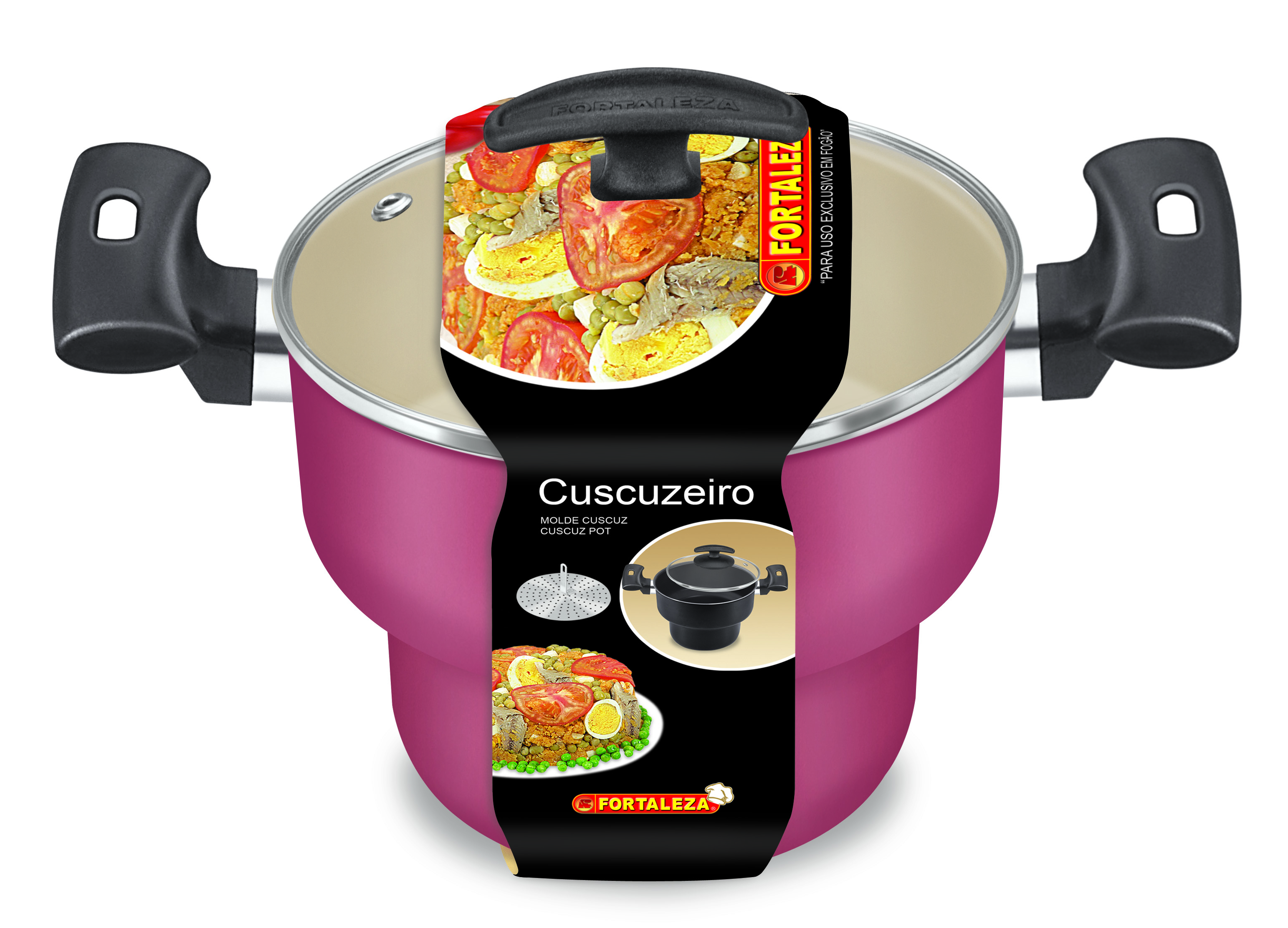 Produto ideal para preparar cuscuz, delicioso prato tradicional de nossa culinária, e também de muitos outros países. Produto fabricado no melhor padrão de qualidade, com alumínio 100% puro e aplicação de antiaderente de qualidade máxima. Prático para usar no dia-a-dia, possui alças anatômicas e antitérmicas que dão mais comodidade, segurança e facilidade no manuseio da peça.