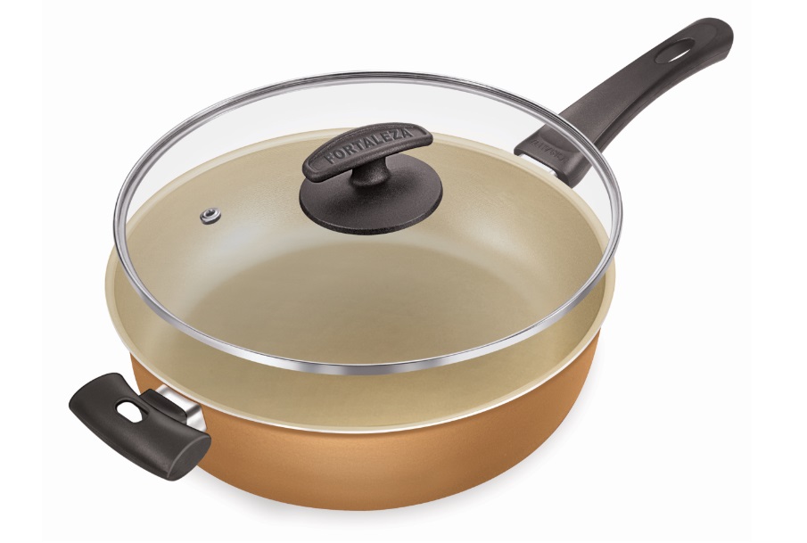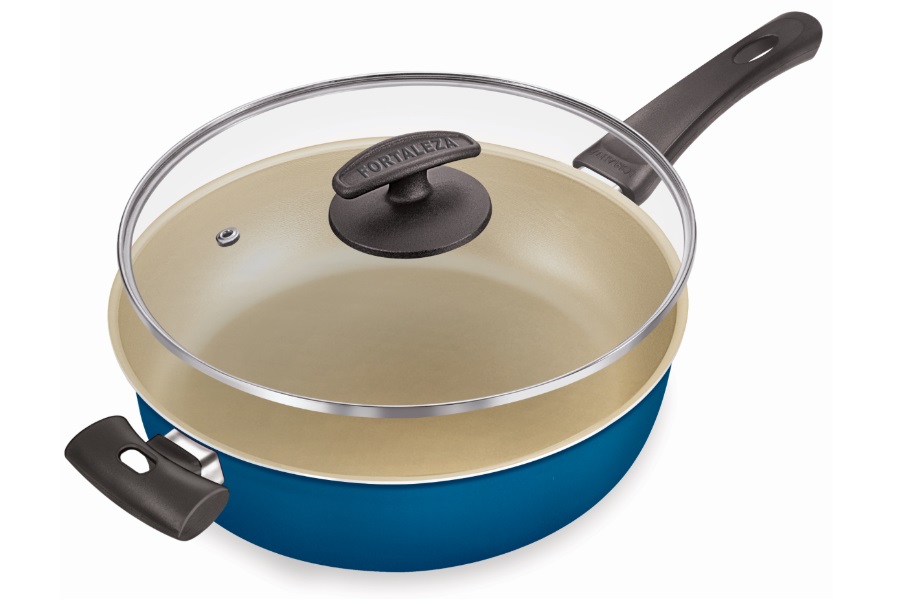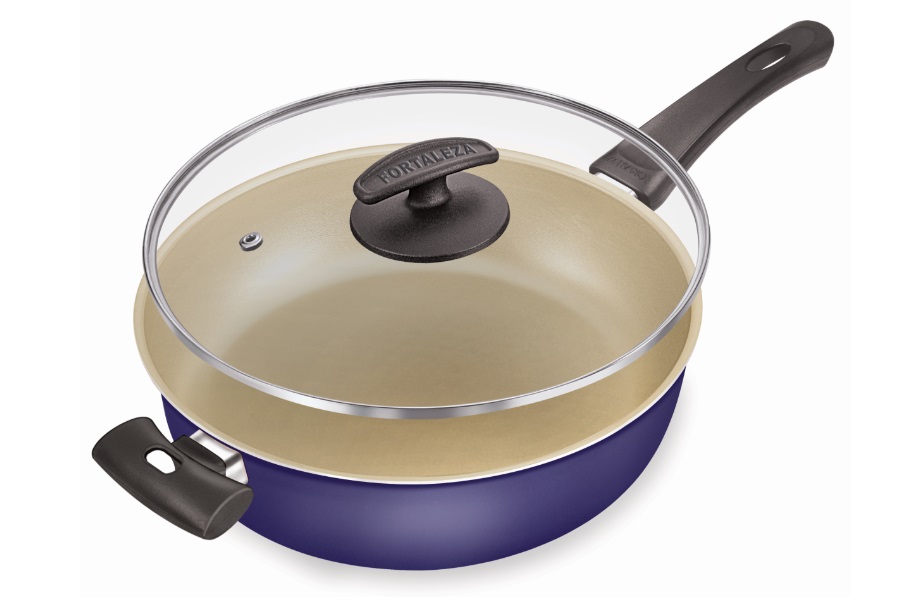 Dê mais cor a sua cozinha, as peças da Linha Artistic Fortaleza além de muito bonitas, tem muita qualidade. Produto fabricado no melhor padrão de qualidade, com alumínio 100% puro e aplicação de antiaderente de qualidade máxima, os alimentos não grudam em sua superfície, o que ajuda a evitar o uso exagerado de gordura no preparo dos alimentos, tornando-os mais saudáveis. A tampa de vidro temperado e saída de vapor, traz mais facilidade no preparo dos alimentos. Prático para usar no dia-a-dia, seu cabo anatômico dá mais comodidade, segurança e facilidade no manuseio das peças. O fundo usinado do produto, além de fazer com que não escorregue no fogão, permite que o calor se distribua melhor e desta forma, fritando, grelhando, assando ou cozendo de forma homogênea. Produtos de alta qualidade com Design Prático, fabricado com materiais de primeira linha, desde o alumínio ao revestimento antiaderente. É muito fácil de usar, prático, fácil de limpar e muito resistente.