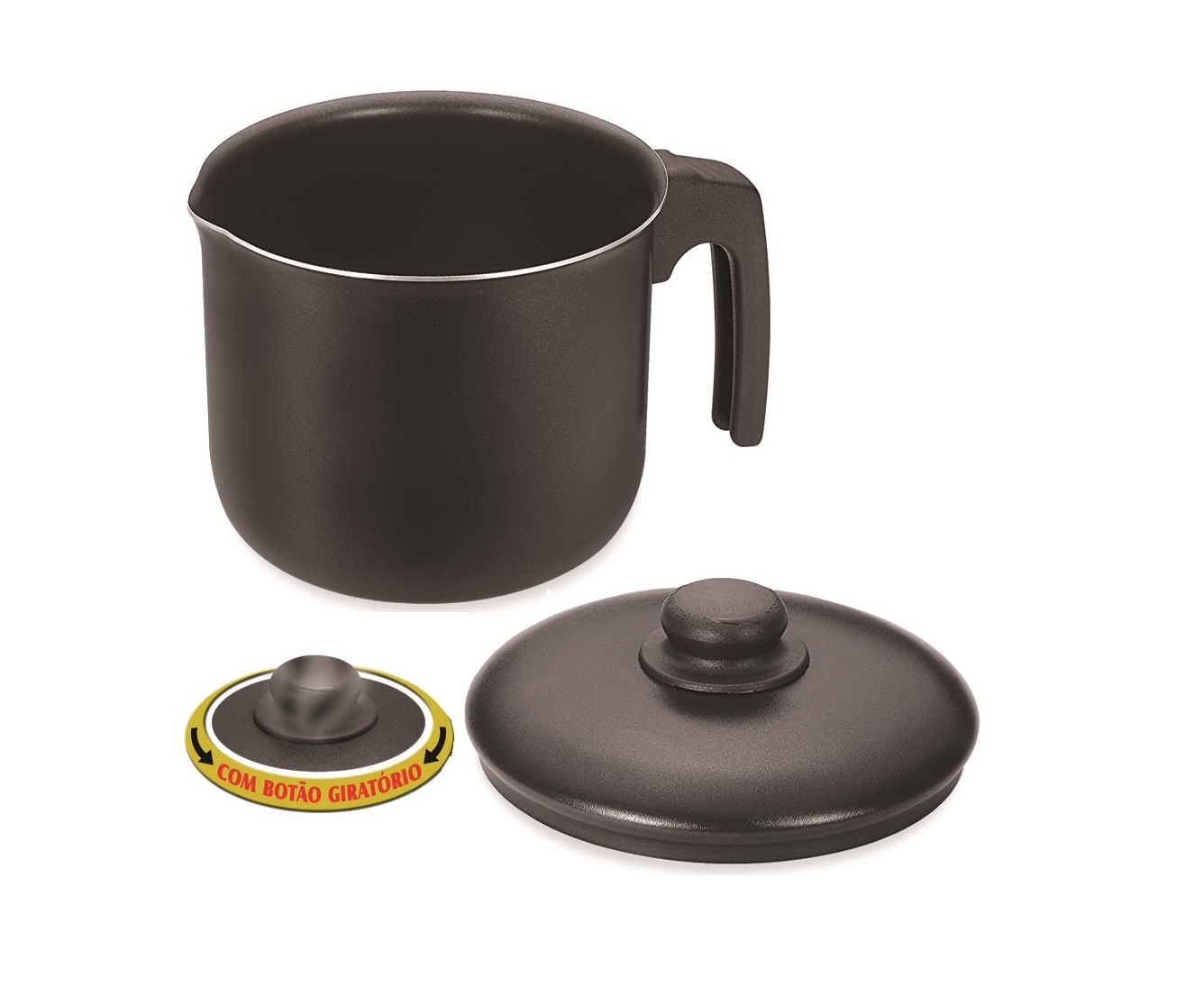 Leiteira com tampa, fabricada no melhor padrão de qualidade, com alumínio 100% puro e aplicação de antiaderente de qualidade máxima para não grudar nada em sua superfície, Possui cabo anatômico que dá mais comodidade, segurança e facilidade durante o manuseio das peças. O fundo usinado faz com que a Leiteira não escorregue no fogão.