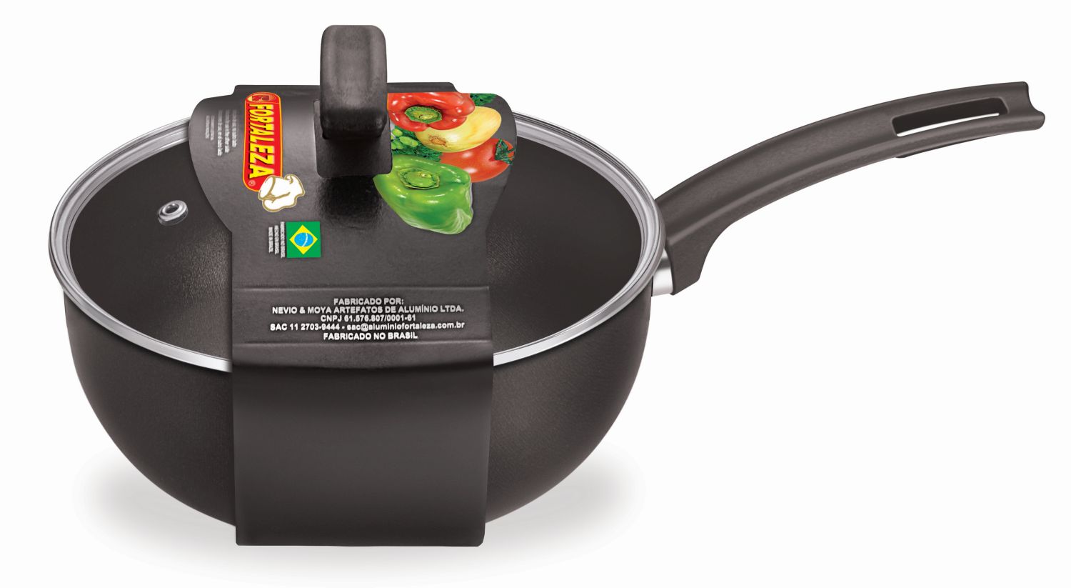Dê mais cor a sua cozinha, as peças da Linha Artistic Fortaleza além de muito bonitas, tem muita qualidade. Produto fabricado no melhor padrão de qualidade, com alumínio 100% puro e aplicação de antiaderente de qualidade máxima, os alimentos não grudam em sua superfície, o que ajuda a evitar o uso exagerado de gordura no preparo dos alimentos, tornando-os mais saudáveis. A tampa de vidro temperado e saída de vapor, traz mais facilidade no preparo dos alimentos. Prático para usar no dia-a-dia, seu cabo anatômico dá mais comodidade, segurança e facilidade no manuseio das peças. O fundo usinado do produto, além de fazer com que não escorregue no fogão, permite que o calor se distribua melhor e desta forma, fritando, grelhando, assando ou cozendo de forma homogênea. Produtos de alta qualidade com Design Prático, fabricado com materiais de primeira linha, desde o alumínio ao revestimento antiaderente. É muito fácil de usar, prático, fácil de limpar e muito resistente. Praticidade, design e durabilidade aliados a um produto de qualidade.