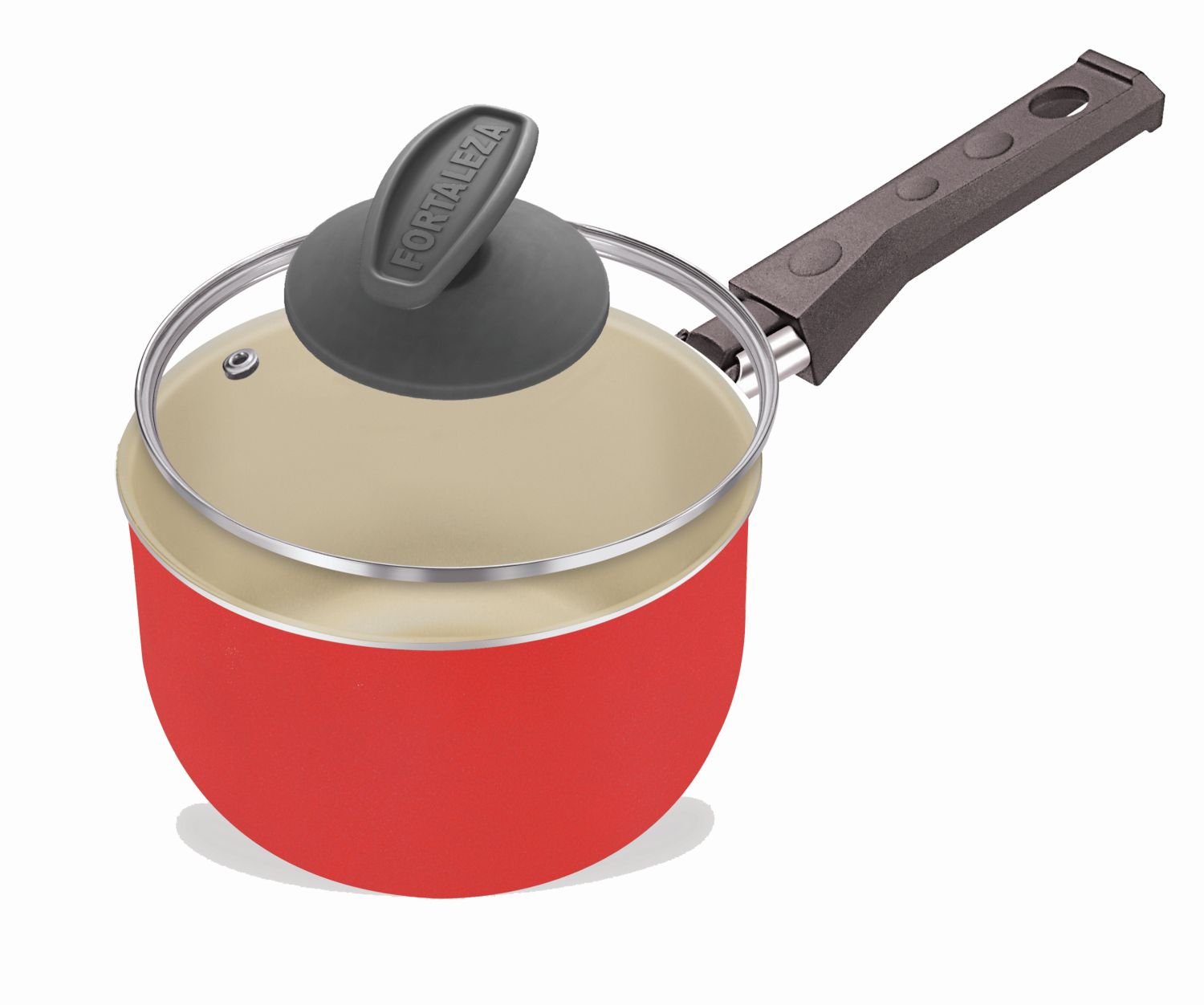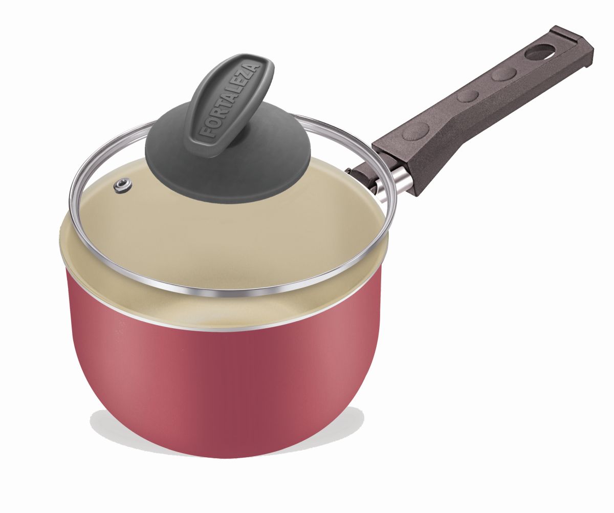 Dê mais cor a sua cozinha, as peças da Linha Artistic Fortaleza além de muito bonitas, tem muita qualidade. Produto fabricado no melhor padrão de qualidade, com alumínio 100% puro e aplicação de antiaderente de qualidade máxima, os alimentos não grudam em sua superfície, o que ajuda a evitar o uso exagerado de gordura no preparo dos alimentos, tornando-os mais saudáveis. A tampa de vidro temperado e saída de vapor, traz mais facilidade no preparo dos alimentos. Prático para usar no dia-a-dia, seu cabo anatômico dá mais comodidade, segurança e facilidade no manuseio das peças. O fundo usinado do produto, além de fazer com que não escorregue no fogão, permite que o calor se distribua melhor e desta forma, fritando, grelhando, assando ou cozendo de forma homogênea. Produtos de alta qualidade com Design Prático, fabricado com materiais de primeira linha, desde o alumínio ao revestimento antiaderente. É muito fácil de usar, prático, fácil de limpar e muito resistente. Praticidade, design e durabilidade aliados a um produto de qualidade.